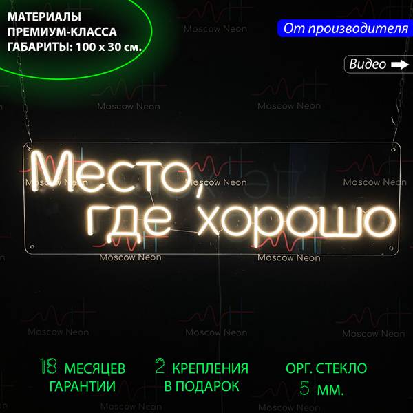 Transform your space into a haven of comfort and style with our handcrafted "Place Where It's Good" neon sign. This vibrant yet inviting LED sign creates a unique ambiance, perfect for welcoming guests or enhancing your home or business. Crafted with premium materials in our Moscow workshop, this neon sign boasts: