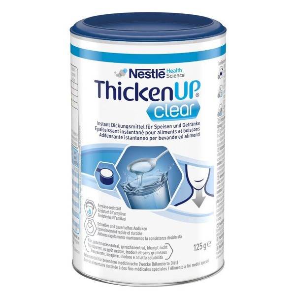 Description: Nestle Resource ThickenUp Clear is a safe and effective food and drink thickener for individuals experiencing dysphagia (difficulty swallowing). This clear, gluten-free and starch-free thickener seamlessly blends into a wide variety of hot and cold beverages, including acidic, sweet, and neutral drinks (e.g., fruit juices, smoothies), as well as protein- and fat-rich liquids (milk, soups). Its high-purity formula, based on maltodextrin and xanthan gum, ensures lump-free mixing and effortless dissolution. Enjoy the convenience of rapid thickening, maintaining consistent viscosity over time without altering the original taste, color, or aroma of your food and drinks. ThickenUp Clear provides a smooth, odorless, and tasteless thickening solution for improved ease of swallowing.