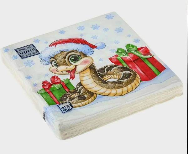 Celebrate the 2025 Year of the Snake with these elegant, three-ply paper napkins! Each napkin measures 33x33cm (or 330x330mm) and features a beautiful snake design, perfect for adding a touch of festive flair to your holiday table. Ideal for home gatherings, corporate events, school parties, or any celebration, these disposable napkins are both practical and stylish. Each pack contains 20 napkins, and this listing includes two packs (40 napkins total). Impress your guests with these festive and convenient napkins – the perfect blend of functionality and holiday cheer.