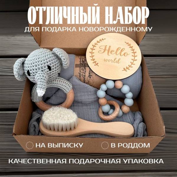 Celebrate the arrival of your little one with our luxurious baby gift set. This thoughtfully curated collection combines high-quality, hypoallergenic, and eco-friendly materials to ensure your baby's comfort and safety. The perfect present for new parents, this gift set includes everything you need: a soft rattle, teether, muslin towel, cotton bib, massage brush, and a charming "Hello World" wooden card. Give the gift of comfort, style, and peace of mind with our premium baby essentials. Spoil your loved ones and welcome your newest family member in style.