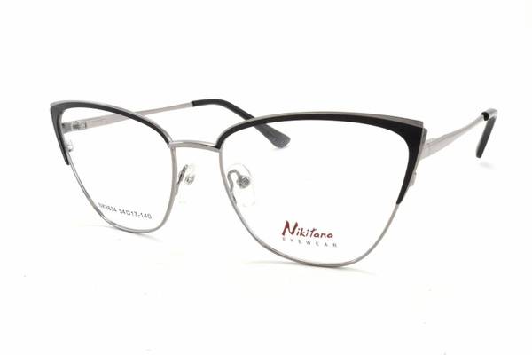 Description: Experience sophisticated style with the NIKITANA NK 8634 C6 cat-eye eyeglasses. Crafted from high-quality metal in a chic black and silver finish, these frames offer a flattering and timeless look. With a 54-17-140 size, they're designed for a comfortable and secure fit. Perfect for the modern woman seeking elegant eyewear.