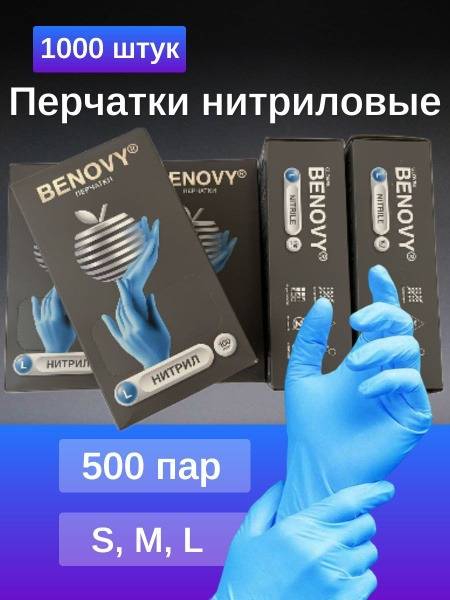Experience superior protection and comfort with Benovy's premium nitrile disposable gloves. This bulk pack contains 1000 gloves (500 pairs) in size L, offering exceptional value for various applications. These powder-free, hypoallergenic blue gloves are meticulously packaged for hygiene, with each glove individually wrapped in 50-micron polyethylene film and secured with tape.
