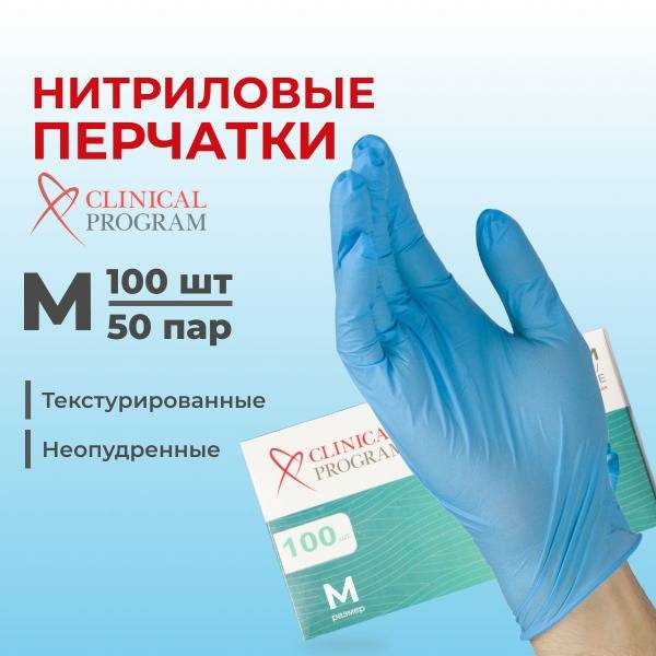 Description: Experience superior comfort and protection with our Clinical Program nitrile gloves. These powder-free, disposable gloves offer exceptional tactile sensitivity, making them ideal for medical, cosmetic, and manicuring procedures. Their textured surface ensures a secure grip in both wet and dry conditions, preventing slippage. Durable and resistant to tears, punctures, and many chemicals, these nitrile gloves provide reliable protection against bacteria, viruses, and other harmful substances. Hypoallergenic and suitable for sensitive skin, they are a versatile choice for various tasks, from household chores and washing dishes to professional use. The large 100-count (50 pairs) box provides excellent value and long-lasting use. Size M (7-8) with a length of 230mm.