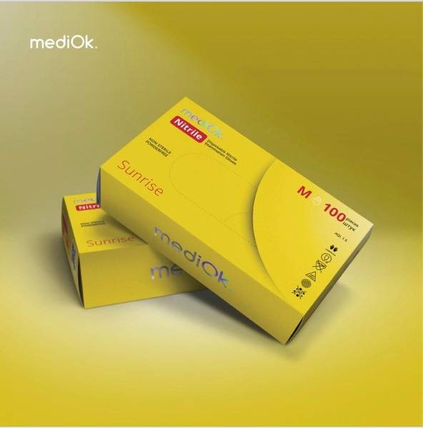 nitrile gloves, disposable gloves, medical gloves, examination gloves, yellow gloves, size M, 100 count, powder-free gloves, textured gloves, ambidextrous gloves, healthcare gloves, Malaysia, Sunrise yellow, medical supplies, patient care, single use gloves, safety gloves, disposable medical exam gloves, nitrile examination gloves.