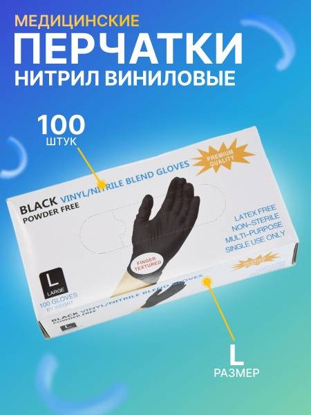 High-quality, disposable nitrile gloves blended with vinyl for superior strength and comfort. These black gloves offer excellent tactile sensitivity, allowing for seamless smartphone and touchscreen use. The secure cuff ensures a snug, comfortable fit. Resistant to punctures, tears, and stretching, these gloves provide reliable protection against a wide range of substances, including weak acids and alkalis, oils, cosmetics, grease, and alcohol. Ideal for various applications, including cleaning, gardening, manicures, and dishwashing. Their hypoallergenic nature and enhanced durability make them a versatile and safe choice. Experience superior protection against microbes, viruses, and bacteria with these comfortable and multi-purpose gloves. (100 gloves, large size)