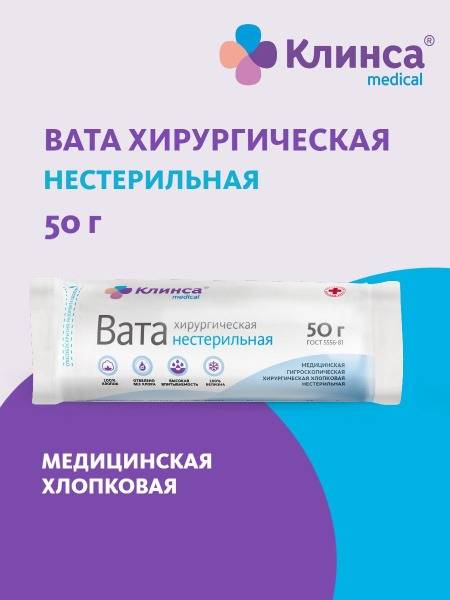 Keywords: surgical cotton, non-sterile cotton, cotton wool, medical cotton, wound care, first aid, absorbent cotton, chlorine-free cotton, Klinsa, 50g cotton, medical supplies, healthcare