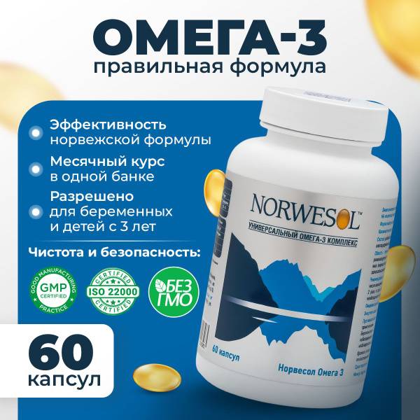 Norvesol Omega-3, a Norwegian formula, is a completely natural, ecologically pure product that positively impacts overall health. Recommended for daily use by adults, teenagers, and children (ages 3+). Unlike fish liver oil, Norvesol's fish oil is sourced from muscle tissue, guaranteeing the absence of harmful impurities, toxins, and heavy metals. EPA and DHA, essential polyunsaturated fatty acids not produced by the body, are abundantly provided. Norvesol Omega-3 is crucial for optimal functioning of virtually all bodily systems: supporting heart and vascular health, promoting joint strength, enhancing vision, memory, and concentration. For seniors, it aids in maintaining cognitive function; for women, it contributes to beauty and youthfulness. Regular intake improves hair condition, skin elasticity, and nail strength. During pregnancy, Norvesol Omega-3 supports fetal growth and development, reduces the risk of premature birth, boosts maternal immunity, and combats insomnia. These premium, odorless, easily digestible softgels can be taken alone or with other vitamin complexes. Our Norwegian formula, compliant with GMP and ISO standards, delivers 550mg of Omega-3 per two capsules. Adjust dosage (e.g., to 1000mg) as needed, but always consult a physician before altering your intake. Choose the right Omega-3; choose Norvesol.
