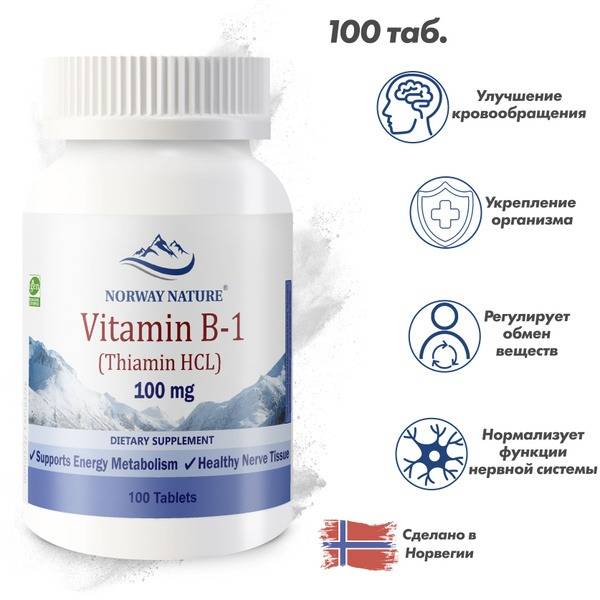 Vitamin B1, Thiamine HCL, Norway Nature, 100mg, 100 tablets, carbohydrate metabolism, energy production, nervous system, brain function, cognitive function, memory, stress reduction, digestion, anti-inflammatory, analgesic, immune support, water-soluble vitamin, dietary supplement.