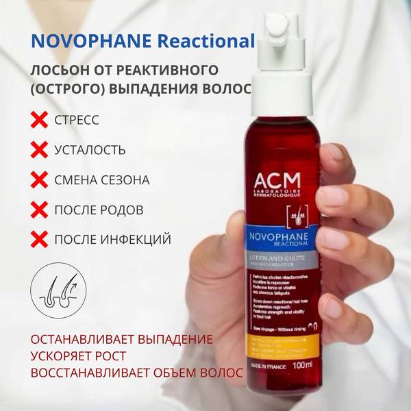 Description: NOVOPHANE Reactional lotion effectively combats reactive hair loss, stimulating hair regrowth and visibly reducing shedding. Stress, fatigue, vitamin deficiencies, infections, and postpartum periods can all trigger temporary hair loss. This potent formula, enriched with Vitamin PP to boost scalp microcirculation, biotin and Vitamin B6 to regulate sebum production and stimulate growth, and invigorating grapefruit and orange essential oils, delivers noticeable results in as little as 6 weeks. Its lightweight, non-sticky texture absorbs quickly without leaving residue, suitable for both men and women. The convenient pump dispenser with applicator makes application easy on wet or dry hair, with no rinsing required. For optimal results, combine with NOVOPHANE hair strengthening capsules. Experience stronger, fuller, more vibrant hair.