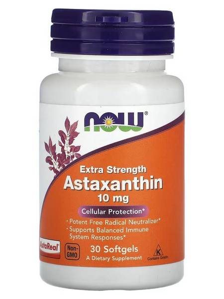 NOW Astaxanthin 10 mg delivers a potent dose of this natural carotenoid, sourced from Haematococcus pluvialis algae. Its unique molecular structure provides superior antioxidant protection against free radicals, supporting cellular health and immune function. This non-GMO formula also contains naturally occurring lutein, canthaxanthin, and beta-carotene. Experience the benefits of cellular-level protection, enhanced immune support, and overall well-being with NOW Astaxanthin. Kosher certified. Contains gelatin. Learn more about the best astaxanthin supplement for skin or how astaxanthin supports your immune system.