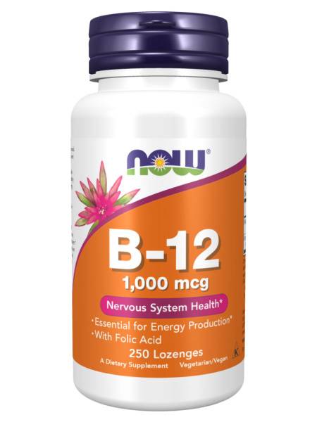 NOW B12 1000 mcg Lozenges provide a high-potency dose of vitamin B12 in two easily absorbable coenzyme forms: methylcobalamin and adenosylcobalamin. Vitamin B12, also known as cobalamin, is a crucial water-soluble vitamin essential for numerous bodily functions. It plays a vital role in: