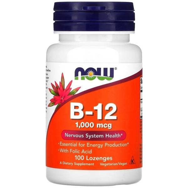 Vitamin B12, B12 supplement, folic acid, energy boost, nerve health, cognitive function, memory, concentration, vegan B12, vegetarian B12, red blood cell production, cardiovascular health, NOW Foods, GMP certified, Made in USA, B vitamins, energy supplement, cognitive enhancement, immune support, prenatal vitamin, healthy weight, mood support, muscle recovery, athlete supplement, vegan supplement, vegetarian supplement.