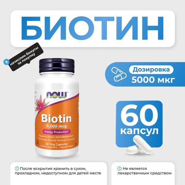 NOW Biotin 5000 mcg (60 Capsules) | GlobalHealingWeb – Worldwide Pharmacy Access
