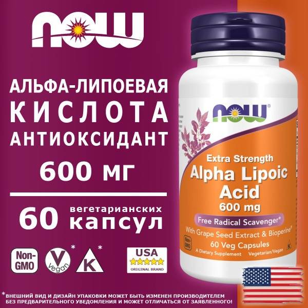 NOW Foods Alpha Lipoic Acid 600mg dietary supplement provides potent antioxidant support. This high-potency formula, featuring 600mg of ALA per capsule (compared to our 100mg version), is enhanced with grape seed extract and BioPerine® for enhanced absorption. Alpha Lipoic Acid (ALA) is a unique antioxidant that works in both water- and fat-soluble environments, supporting glutathione production and recycling vitamins C and E. ALA contributes to nerve tissue health, healthy glucose metabolism, and cardiovascular support.