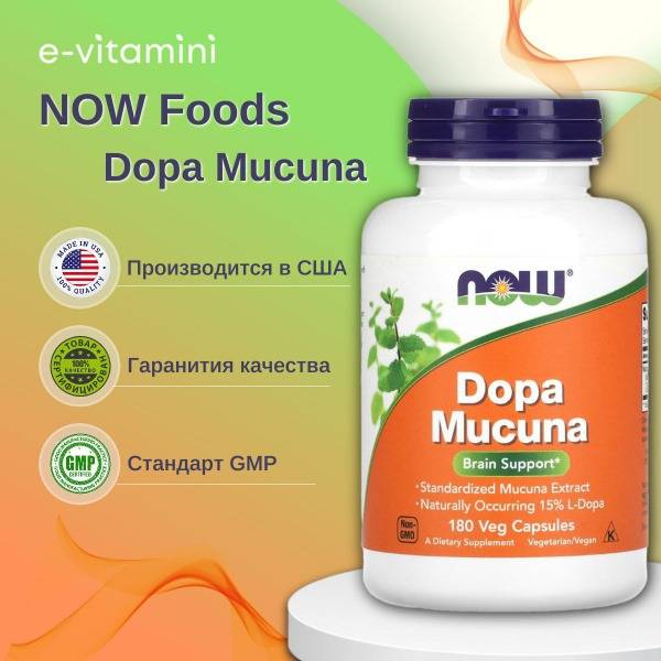 Boost your dopamine levels naturally with NOW Foods Mucuna Dopa. This supplement provides 15% L-Dopa, a direct precursor to dopamine, a neurotransmitter crucial for mood, motivation, and overall well-being. Backed by thousands of years of traditional Ayurvedic use, Mucuna Dopa supports your body's natural dopamine production for a happier, more energetic you. Contains 180 vegetarian capsules.