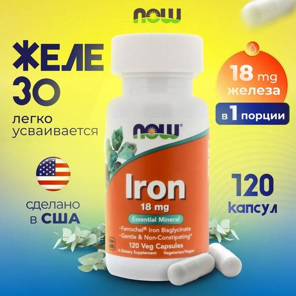 "name": "Now Foods Iron Bisglycinate Chelate - 18mg, 120 Capsules",