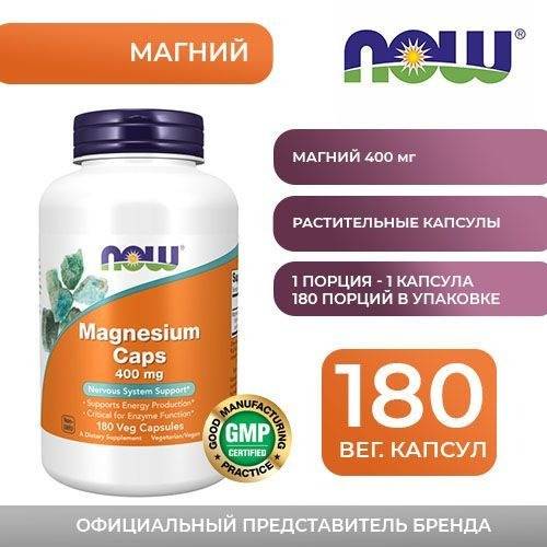 NOW Foods Magnesium 400mg is a high-quality, reliable source of magnesium for optimal health. Take one capsule daily to support your cardiovascular system, muscle function, nervous system, and overall well-being. With 180 capsules per bottle, you'll have a long-lasting supply of this essential nutrient.