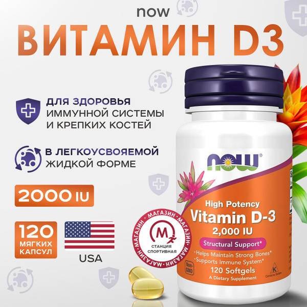 Support your overall well-being with NOW Foods Vitamin D-3, a high-quality dietary supplement essential for maintaining health. Each bottle contains 120 easy-to-swallow capsules, providing a long-lasting supply to ensure consistent intake. This vital nutrient plays a crucial role in regulating calcium absorption, which is fundamental for strong bones and healthy teeth.