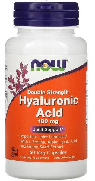 Keywords: Hyaluronic acid, NOW Foods, supplements, skin health, joint health, collagen, antioxidants, L-proline, alpha-lipoic acid, grape seed extract, anti-aging, wrinkle reduction, joint pain relief, mobility support, GMP certified, USA made, dietary supplement, veggie capsules, 100mg, 60 capsules.