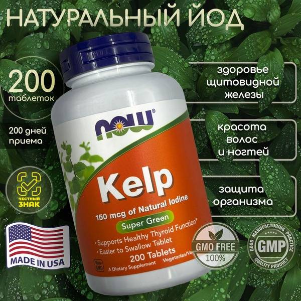 "description": "Support your thyroid health and metabolism with NOW Kelp Iodine, a high-quality supplement providing 150 mcg of organic iodine per tablet from sustainably sourced kelp. This daily dose contributes to the synthesis of thyroid hormones, crucial for metabolism, energy production, and overall well-being. NOW Kelp is an excellent choice for maintaining optimal iodine levels, particularly beneficial for those following specific diets or living in iodine-deficient regions. Each bottle contains 200 tablets for a prolonged supply. Our formula uses only natural ingredients, free from artificial additives and preservatives, ensuring maximum bioavailability and effectiveness for long-term use. Experience the difference with NOW Kelp – supporting a healthy thyroid and balanced metabolism naturally.",
