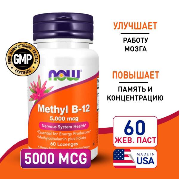 Support your nervous system and cognitive function with NOW Methylcobalamin B12, a superior form of vitamin B12. This potent 5000 mcg lozenge formula promotes healthy nerve function, fat and protein metabolism, and sharp mental clarity. Essential for vegetarians and vegans, as B12 is primarily found in animal products, this supplement helps address potential deficiencies that can impact overall well-being. For optimal results, combine with folic acid. 60 lozenges per bottle.