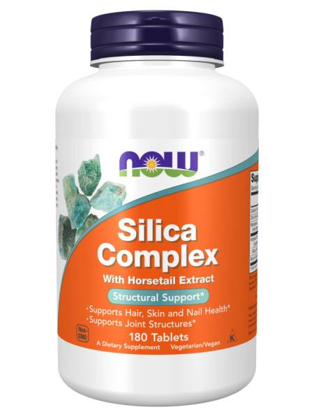 NOW Silica Complex is a comprehensive dietary supplement formulated to support the health of your connective tissues, bones, skin, hair, and nails. This powerful blend combines key mineralsācalcium, manganese, zinc, boron, and siliconāwith the added benefits of horsetail extract and food-grade clay.