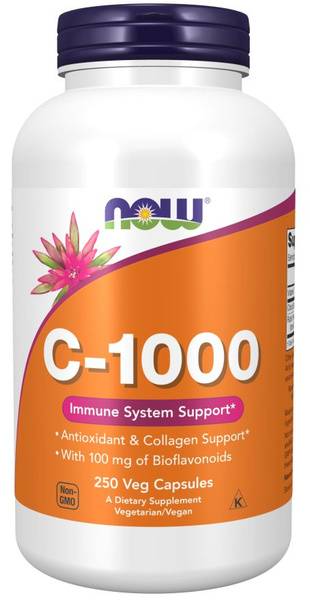Boost your immune system and protect your cells with NOW Vitamin C-1000, a high-potency antioxidant supplement. Each vegetarian capsule delivers 1000mg of Vitamin C plus bioflavonoids for enhanced absorption and utilization. Vitamin C plays a crucial role in collagen production, supporting healthy skin, bones, and joints. It's also essential for immune function, and acts as a powerful antioxidant to combat free radical damage. Experience the numerous benefits of Vitamin C, including improved collagen synthesis, enhanced iron absorption, and support for overall well-being. Choose NOW Vitamin C-1000 for superior quality and effectiveness in maintaining optimal health. 250 vegetarian capsules per bottle.