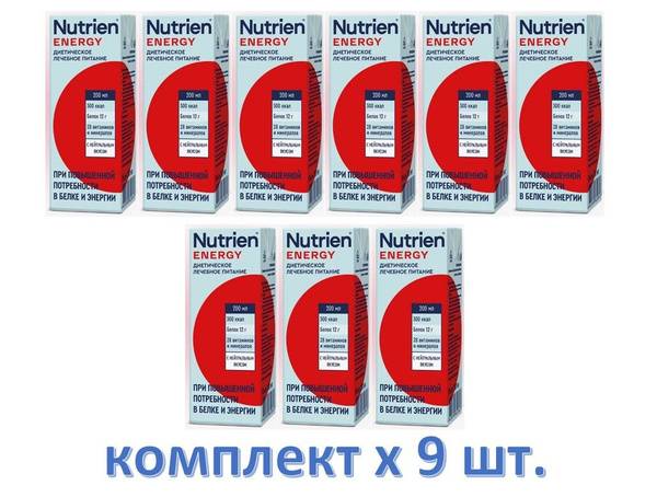 Nutrien Energy, ready-to-drink, nutritional supplement, enteral nutrition, post-surgery recovery, digestive health, MCT oil, prebiotics, gluten-free, lactose-free, cholesterol-free, high protein, low glycemic index, omega 3, omega 6, adults, children, elderly, medical nutrition, complete nutrition, supplemental nutrition, malnutrition, nutritional deficiency, gastrointestinal disorders, neurological disorders, cancer nutrition, palliative care, cystic fibrosis, weight management, 200ml, 9 pack.