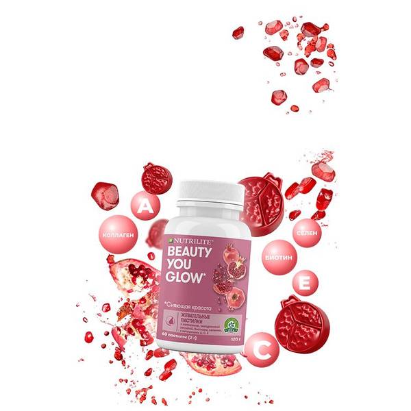 Keywords: Nutrilite, Beauty You Glow, gummies, vitamins, collagen, hyaluronic acid, biotin, selenium, skin health, hair health, nail health, beauty supplement, dietary supplement, berry flavor, gluten-free, lactose-free, no artificial colors, no artificial preservatives, radiant skin, healthy hair, strong nails, on-the-go, convenient, #1 vitamin brand.
