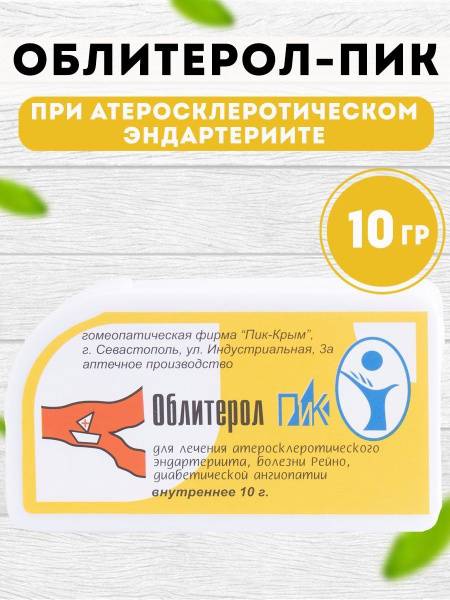 Obliterol-Pik 10g granules are a multi-component complex designed to address peripheral circulatory disorders, ranging from spasms and pathological narrowing of arteries to complete blockage. This innovative formula works to restore microcirculation, thinning the blood for improved flow and reducing the risk of potentially dangerous blood clots and stasis.