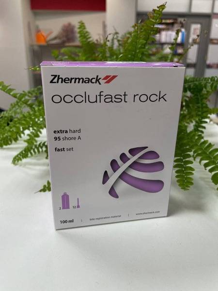 Occlufast Rock, Zhermack, bite registration, impression material, A-silicone, dental material, intermaxillary registration, TMJ, temporomandibular joint, orthodontics, dental impression, high precision, dimensional stability, dual cartridge, automated mixing, dentistry, dental supplies.