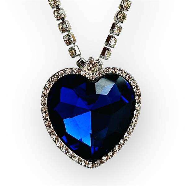 Introducing the updated version of our stunning Ocean Heart necklace from our newest collection. This opulent, eye-catching piece features a large, faceted sapphire-colored crystal, meticulously crafted from a hypoallergenic jewelry alloy. The crystal's brilliance is further enhanced by the sparkling micro-crystals encrusted along its edges and extending onto the adjustable chain. The necklace measures 46cm (18 inches), with a 7cm (2.75 inches) extender chain.
