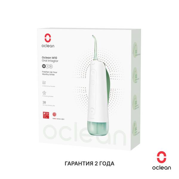 Oclean W10, water flosser, oral irrigator, dental flosser, cordless water flosser, electric water flosser, 5 cleaning modes, 1400 pulses per minute, 30-day battery life, Quadpacer timer, removable water tank, green water flosser, gum health, plaque removal, stain removal, braces, implants, crowns, periodontal pockets, travel water flosser, oral hygiene, healthy teeth.