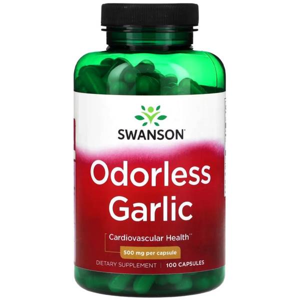 Keywords: Swanson Odorless Garlic, garlic supplement, odorless garlic, garlic extract, immune support, cardiovascular support, cholesterol support, blood pressure support, antioxidant, free radical defense, Swanson, GMP certified, non-GMO, gluten-free, 500mg garlic, Allium sativum, immune system booster, heart health, dietary supplement, American-made supplement, high quality supplement.