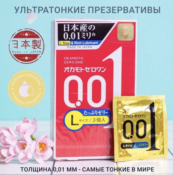 Experience unparalleled intimacy with Okamoto Zero One 0.01mm ultra-thin condoms. These Japanese-made polyurethane condoms offer superior sensitivity and reliable protection, enhanced by added lubricant for a luxuriously smooth and pleasurable experience. The 3-pack includes larger (L size) condoms, measuring 56 ± 2 mm wide, 175 ± 7 mm long, with a 11-11.5 cm circumference. Made with hypoallergenic polyurethane, these condoms are designed for exceptional comfort and are perfect for exploring new levels of intimacy. Enjoy the ultimate combination of sensitivity and security with Okamoto's renowned quality and advanced technology. Buy now and discover the difference.