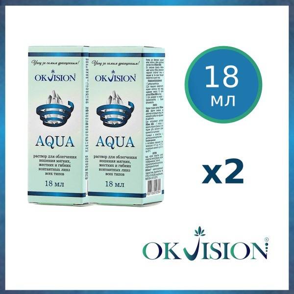 <img src="okvision-aqua.jpg" alt="OKVision Aqua Eye Drops - Two 18ml bottles of moisturizing contact lens solution">