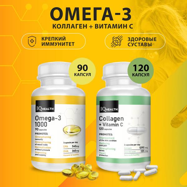 Omega-3, Fish Oil, EPA, DHA, Collagen, Vitamin C, Joint Health, Immune Support, Skin Health, Hair Health, Nail Health, Anti-aging, Supplements, Dietary Supplements, IQHealth, Hydrolyzed Collagen, Cardiovascular Health, Brain Health, Natural Ingredients, Joint Pain Relief, Immune Boost, Beauty Supplement