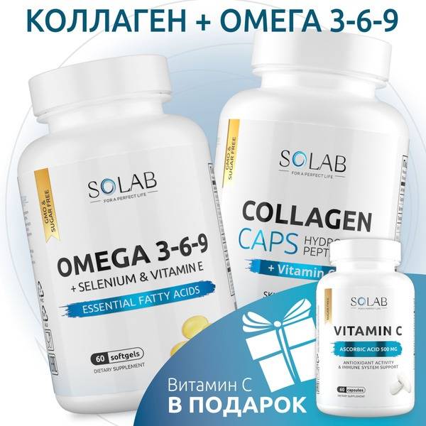 This Solab beauty and wellness bundle combines two powerful complexes: Omega-3-6-9 and Collagen with Vitamin C. Receive a FREE bottle of Vitamin C capsules!