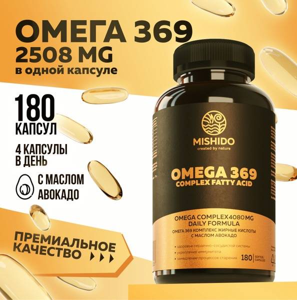 Mishido Omega 3-6-9 is a premium supplement providing a balanced blend of omega-3, omega-6, and omega-9 fatty acids from fish oil, avocado oil, and flaxseed oil (linoleic acid). This comprehensive formula supports cardiovascular, nervous, immune, and endocrine system health. Benefits include improved memory, vision, and glucose metabolism; reduced risk of diabetes; stronger bones; normalized blood pressure and cholesterol levels; and reduced hair loss. Experience healthier, more hydrated, and elastic skin with minimized wrinkles and dark circles. Mishido Omega 3-6-9 is made with premium Swiss DSM (Peru) ingredients and advanced technology, ensuring superior quality. Suitable for adults, teens, athletes, and seniors. Support your family's overall health, youthfulness, and vitality.