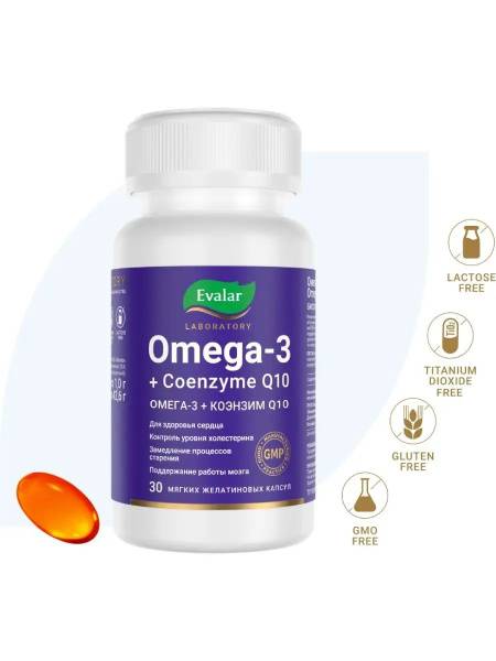 Omega-3 + Coenzyme Q10 (Evalar Laboratory) - 30 Capsules
