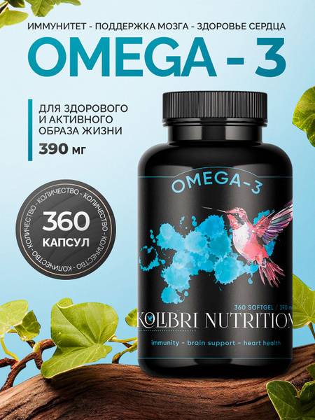 Kolibri Nutrition, Omega-3, Omega 3, fish oil, EPA, DHA, heart health, joint health, immune support, blood pressure, cholesterol, anti-inflammatory, supplements, dietary supplement, capsules, 360 capsules, 390mg, healthy lifestyle, wellbeing, cognitive function, anti-aging.