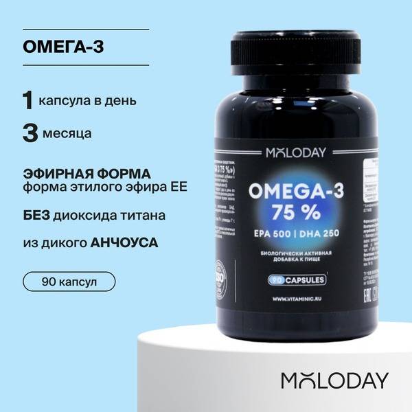 MOLODAY Omega-3 Fish Oil Capsules deliver 75% highly concentrated Omega-3 fatty acids (750mg per serving) in a convenient one-capsule-a-day formula. These odorless, tasteless capsules support heart health, brain function, immune system strength, and contribute to healthy skin, hair, and nails. Experience improved mood, reduced anxiety, and enhanced emotional well-being. Perfect for women seeking to maintain overall health and beauty. One bottle provides a 3-month supply. Invest in your long-term health and well-being with MOLODAY. Boost your immunity and feel your best!