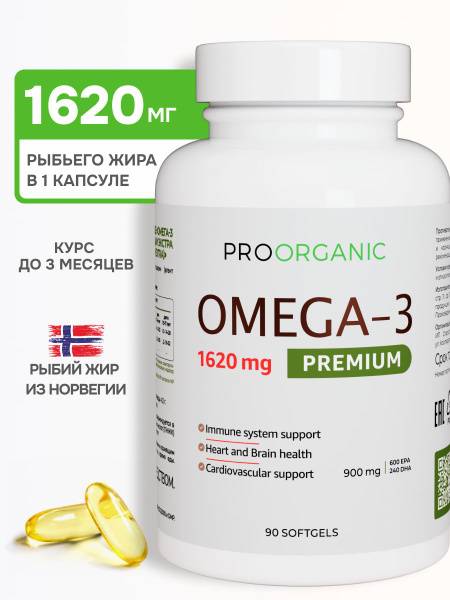 Experience the exceptional benefits of Proorganic Omega-3 Fish Oil Concentrate, featuring a potent 1620mg per serving in 90 easy-to-swallow capsules. Crafted from premium-grade, wild-caught ocean fish, our fish oil is a rich source of essential polyunsaturated fatty acids, vital for your overall well-being.