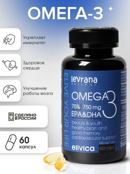 Keywords: Omega-3, fish oil, EPA, DHA, supplements, vitamins, immunity, energy, beauty, Levrana, Elivica, 60 capsules, brain health, heart health, eye health, skin health, hair health, anti-inflammatory, cholesterol, blood pressure, mental health, cognitive function, dietary supplement, PUFA, polyunsaturated fatty acids, age-related macular degeneration, cataracts, dry eyes, acne, dermatitis, varicose veins, wound healing, healthy aging.