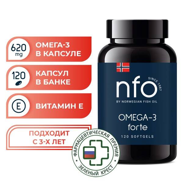 NFO Omega-3 Forte: 120 High-Potency Fish Oil Capsules (1384mg) - Wild-Caught Norwegian Fish Oil for Kids & Adults