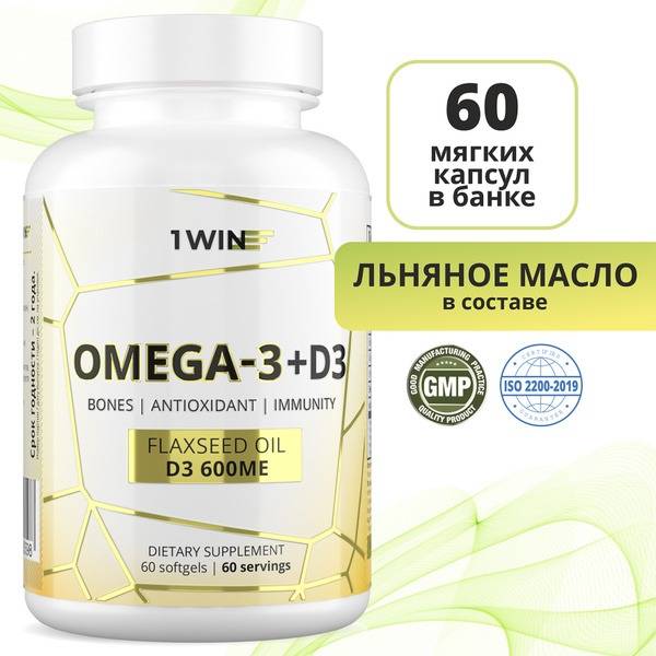 1WIN's Omega-3 & Vitamin D3 supplement provides a powerful blend of alpha-linolenic acid (Omega-3 from flaxseed oil) and 300% of your daily recommended Vitamin D3 (600 IU). This unique combination enhances Vitamin D3 absorption, as it's a fat-soluble vitamin. Omega-3s are crucial for building cell membranes, supporting cardiovascular health, brain function, and maintaining sharp vision. DHA, a key component of Omega-3s, is vital for lifelong brain health. Vitamin D3 is essential for strong bones and teeth, a healthy immune system, and helps reduce the risk of cardiovascular disease and hypertension. Vitamin D deficiency in adults can lead to osteoporosis. Take one capsule daily with a meal for one month. Consult your doctor before use.