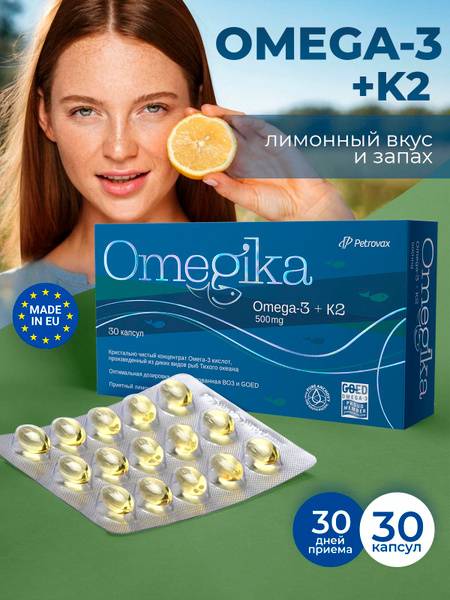 Support your overall well-being with our premium Omega-3 & Vitamin K2 supplement. Made with sustainably sourced fish oil from wild anchovies, each two-capsule serving delivers 1000mg of Omega-3 fatty acids, enhanced with a refreshing lemon flavor. This potent formula contributes to cardiovascular health, promotes healthy blood vessels, and supports radiant skin, hair, and nails. Convenient blister packaging keeps capsules fresh and prevents clumping. One daily serving is ideal for both men and women. Our expertly formulated supplement is recommended by health professionals for its high quality and effectiveness. Experience the positive impact of Omega-3s – try it today!