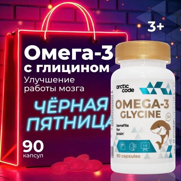Arctic Code Omega-3 with Glycine is a natural, delicious, and effective dietary supplement for children (3+), teenagers, and adults. Each 700mg capsule (90 capsules per bottle) is formulated with cherry and multifruit flavors, providing essential fatty acids crucial for overall health and well-being. EPA and DHA, key components of Omega-3, play a vital role in brain development, vision health, cardiovascular support, and immune function.