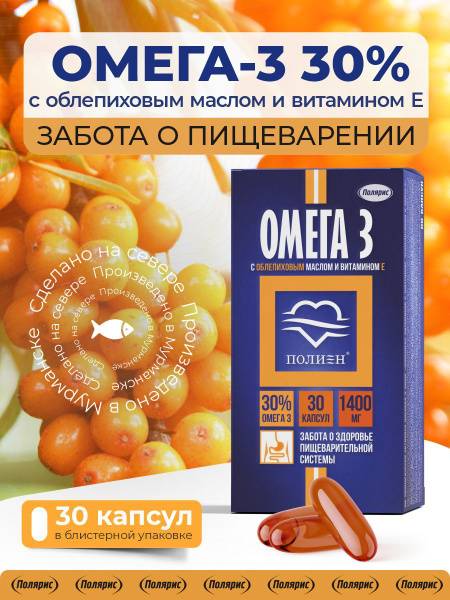 Make Polien's Omega-3 with Sea Buckthorn Oil and Vitamin E a daily habit for a healthier you. 30 capsules per bottle.