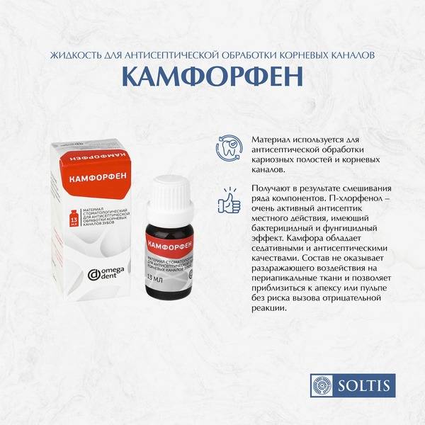 Omega-Dent Camphorphen is a superior root canal disinfectant utilizing a blend of camphorated p-chlorophenol for effective antiseptic treatment of carious cavities and root canals. p-Chlorophenol, a potent local antiseptic, provides strong bactericidal and fungicidal action. Combined with camphor's soothing and antiseptic properties, Camphorphen minimizes irritation to periapical tissues, allowing safe and effective access to the apex or pulp. Its unique formulation ensures a gentle yet powerful cleansing action.